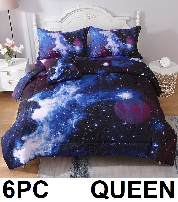 8pc jqinhome themed bed in a bag comforter set - queen - galaxy