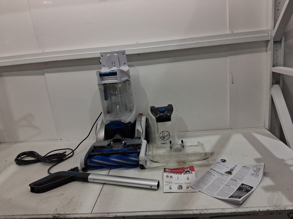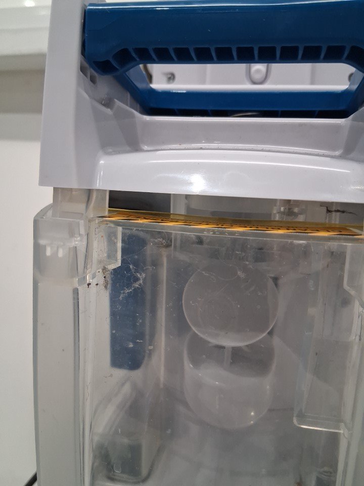 Tested for power, there are some dirt and water marks in carpet cleaner and missing attachments for it and the cleaner for the it, see all photos.