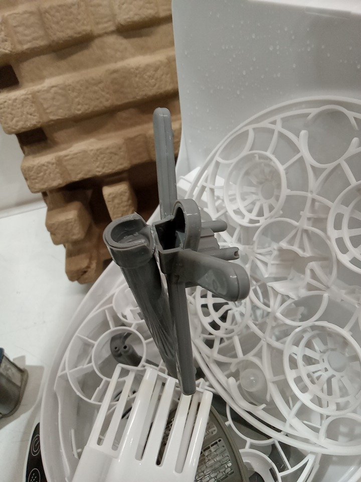 The middle arm is broken on top, water present from previous use. Tested for power only.