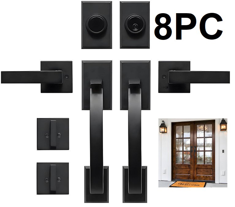 8PC Barlezy Front Double Door Handle Set - Matte Black (model: Z8PA-301-F046)
