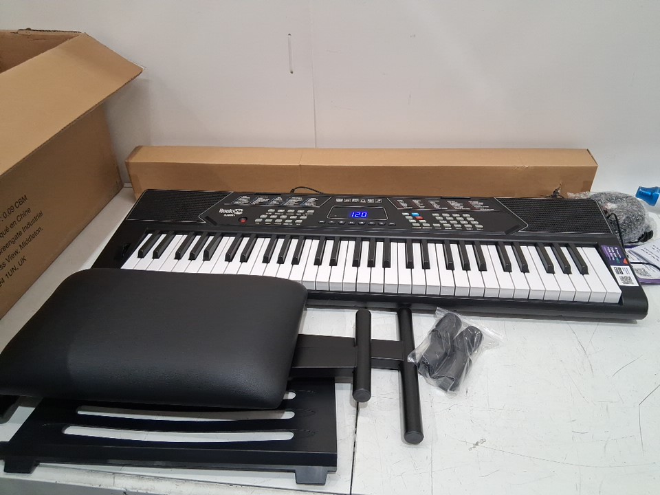 RockJam 61 Key Keyboard Piano With Pitch Bend Kit, Keyboard Stand, and Piano Bench - 9V - black (model: rj5061)