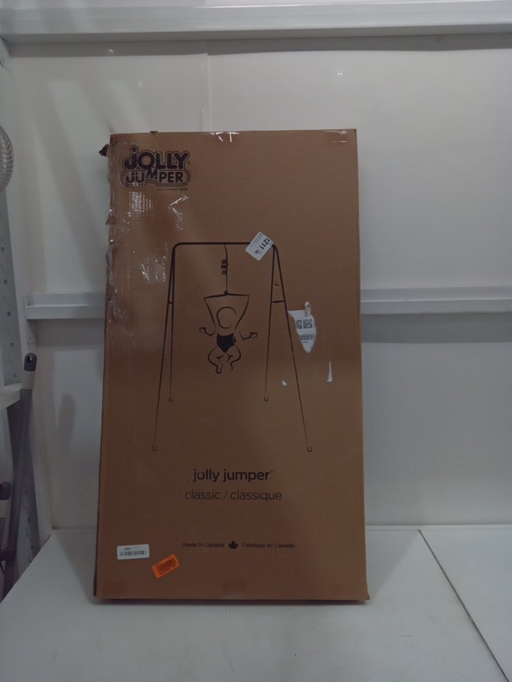 Jolly Jumper Classic Portable Baby Exerciser With Fabric Saddle - 28 LBS Max - White/black (Model: 108)