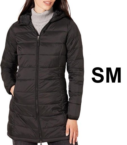 womens amazon essentials long light weight hooded puffer jacket - Small - black - (style: W-S17AE10009)