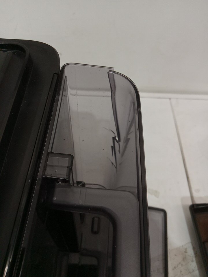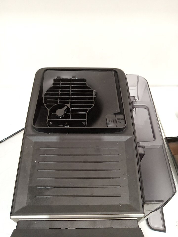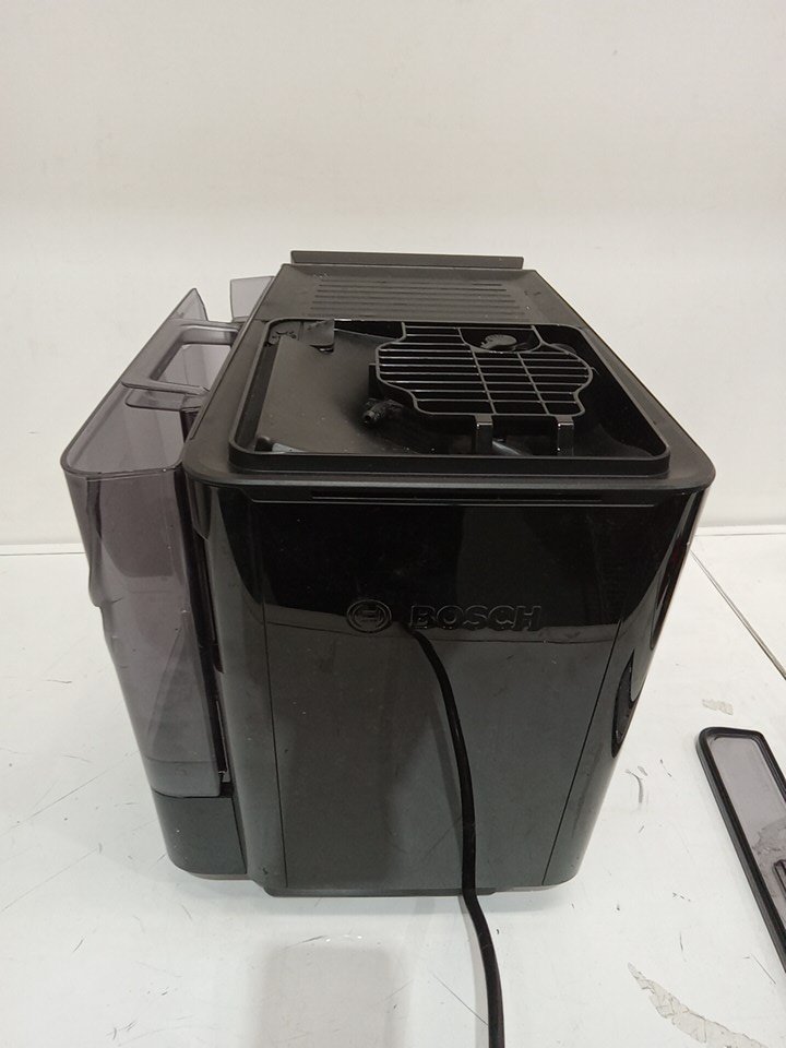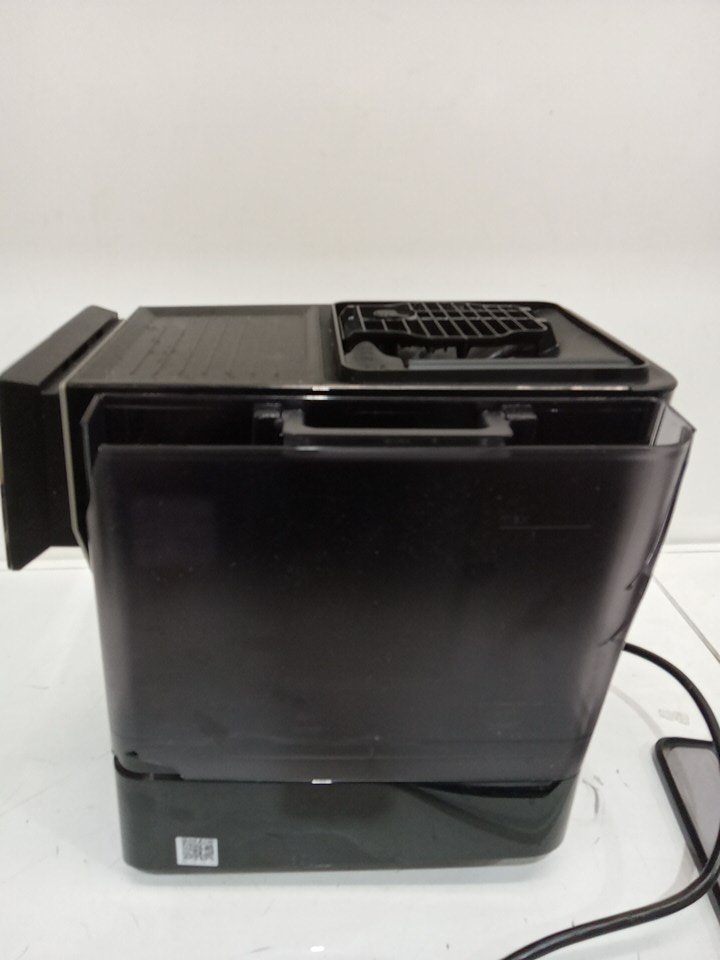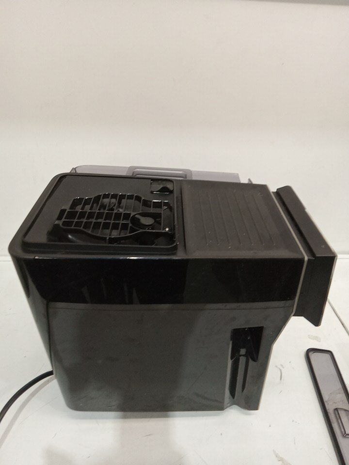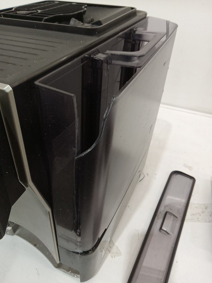 There is coffee/water residue present as a result from previous use. Item tested for power only. Unable to fully test item due to it's nature. Item marked with issue as the water tank is cracked in several spots and has some pieces broken on it. The water filter is also missing. Customer will require purchasing these parts in order to use the item.
