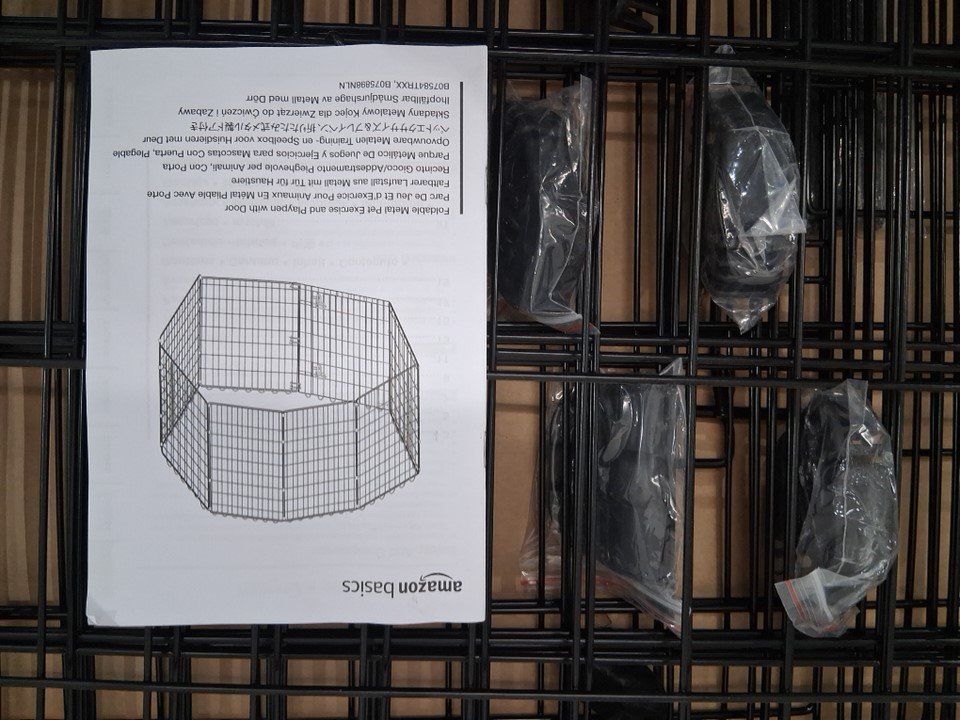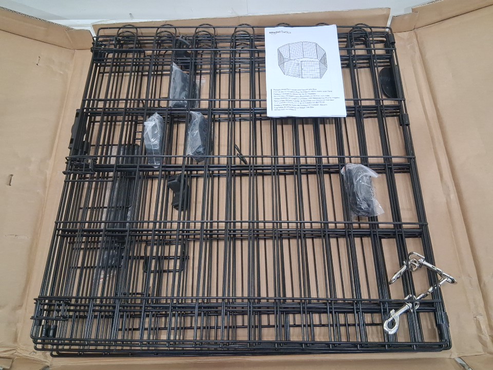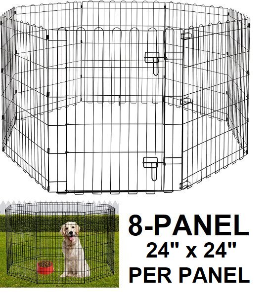 AMAZONBASICS FOLDABLE METAL 8-PANEL PET DOG EXERCISE PLAYPEN WITH DOOR - 24" x 24" PER PANEL - BLACK (MODEL: 9004-24A)