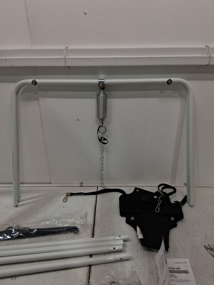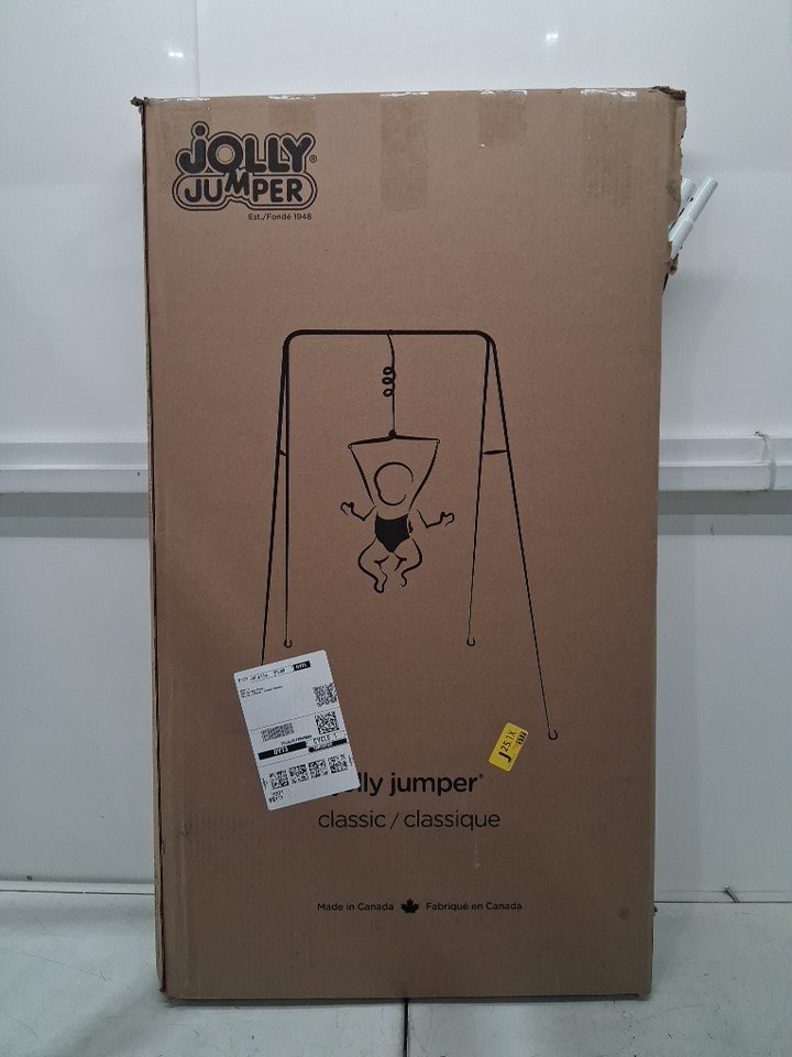 Jolly Jumper Classic Portable Baby Exerciser With Fabric Saddle - 28 LBS Max - White/black (Model: 108)
