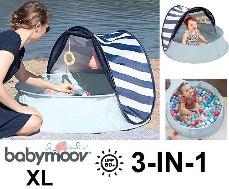 kids Babymoov Aquani 3-in-1 Pop Up Tent Kiddie Pool & Play Yard with UPF 50+ sun protection - 36" x 22" x 36" - Light blue (MODEL: ‎A035220_US)