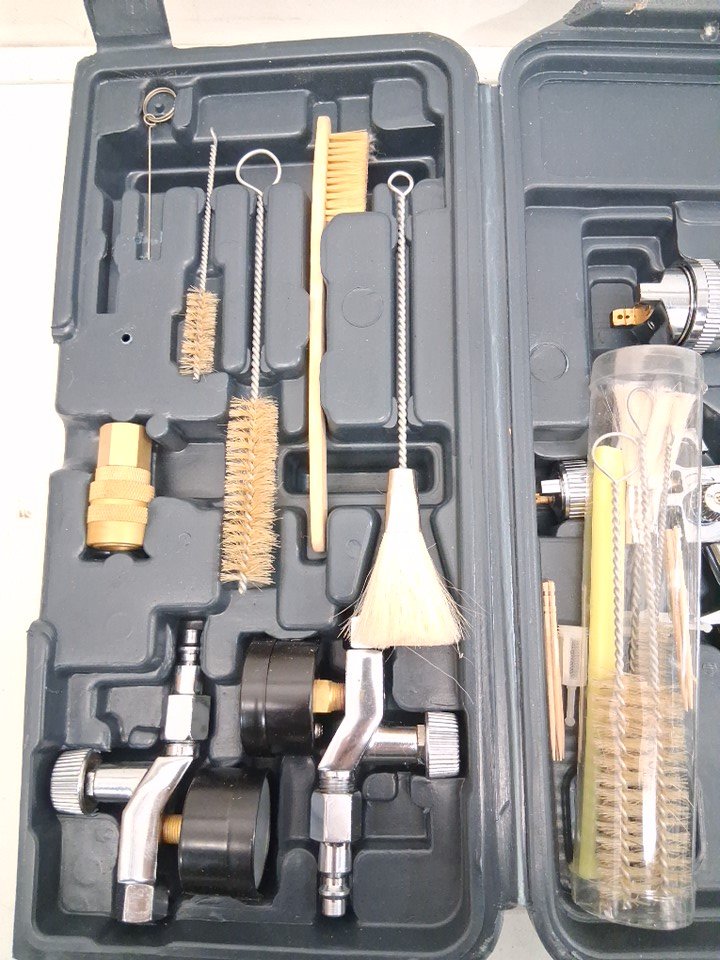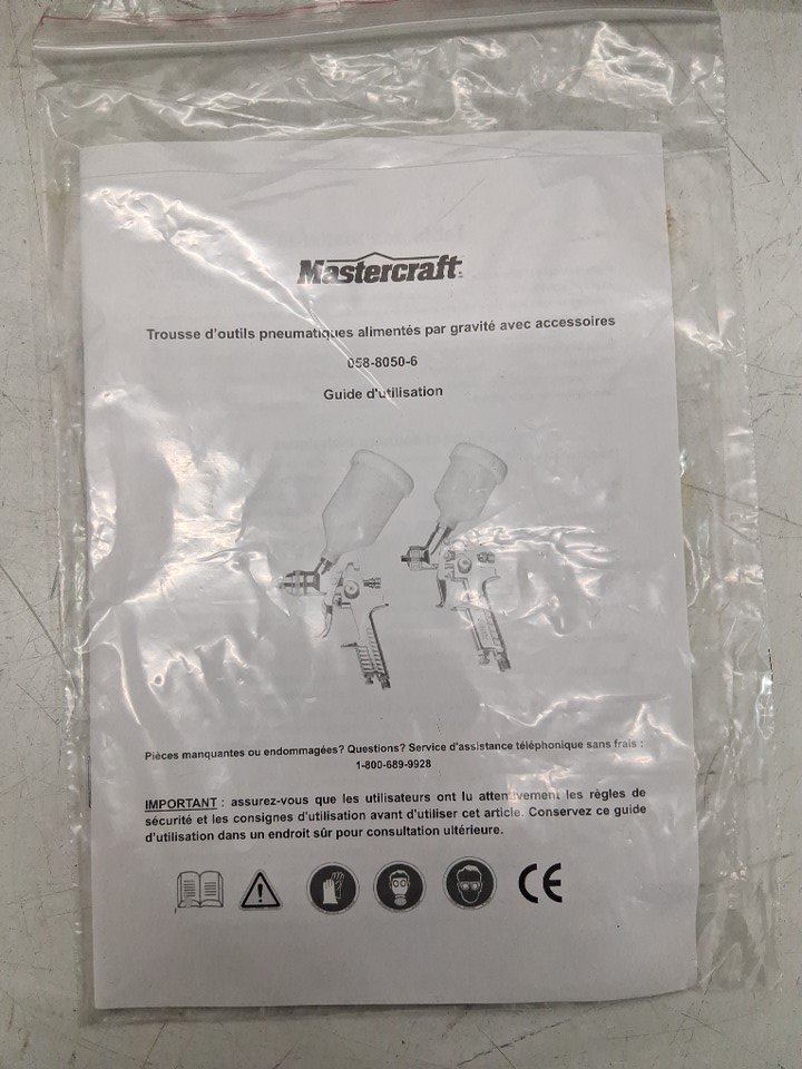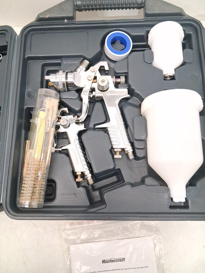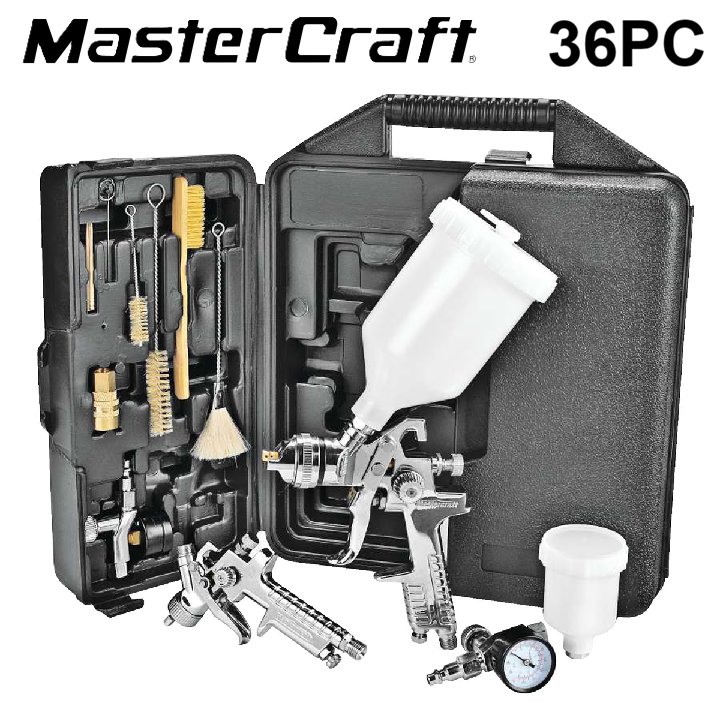 36pc Mastercraft HVLP Pneumatic Air Paint Sprayer Gun Set For Metal Surafces - Air inlet 1/4"- Air hose required 3/8" - black/white/bronze (model: 058-8050-6)
