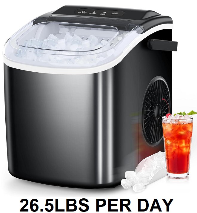 COWSAR COUNTERTOP PORTABLE ICE MAKER WITH SELF CLEANING - MAKES 26.5LBS PER DAY - BLACK (MODEL: Z5812SH-CSZ)