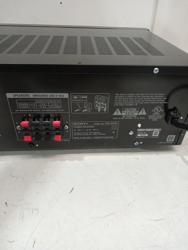 Sony 2 CHANNEL STEREO RECEIVER WITH PHONO INPUTS & BLUETOOTH - BLACK (MODEL: STR-DH190)