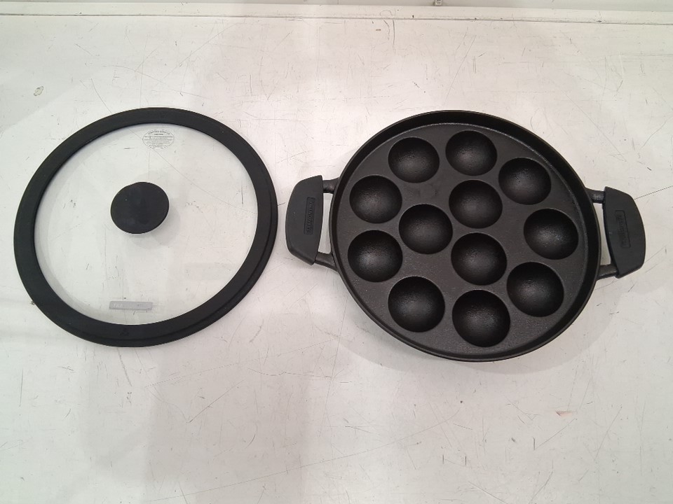 Food and heat residue on both sides of pan indicates prior short-term use. (See photos)