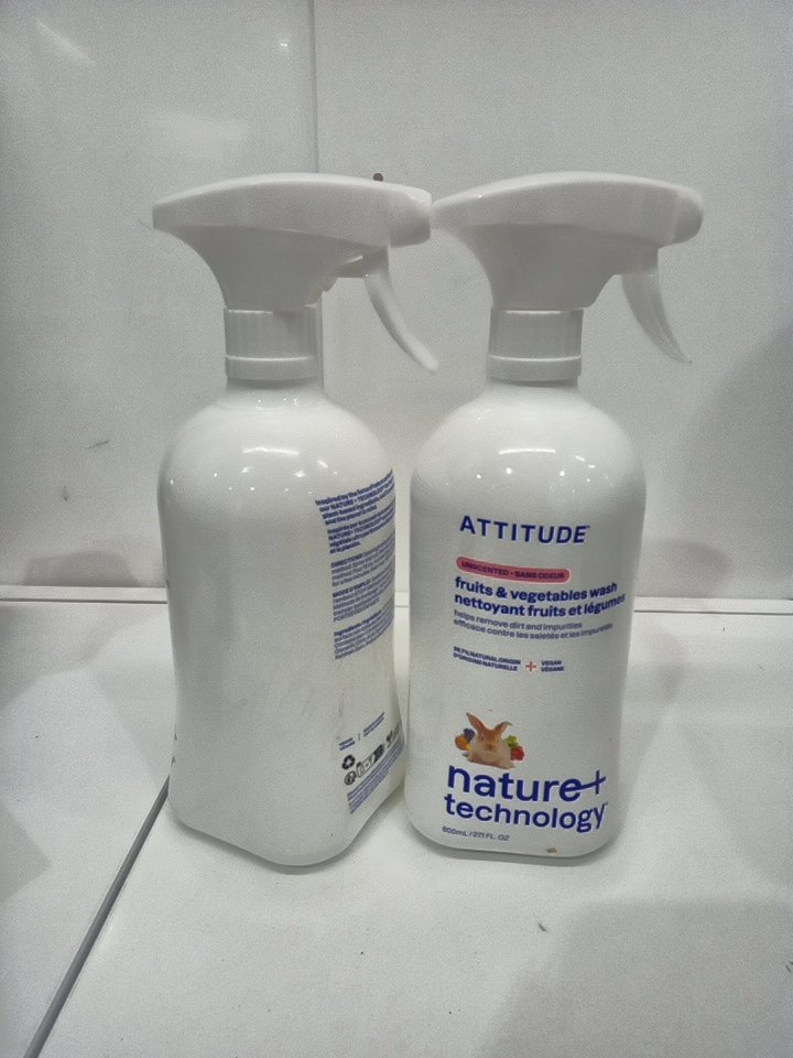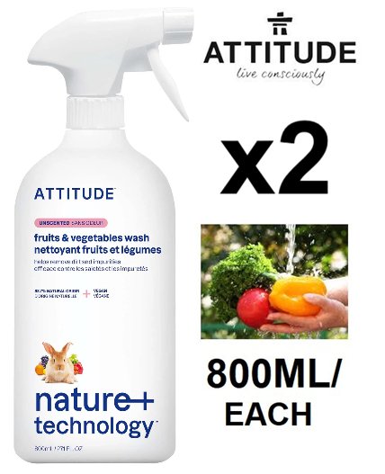 2 ATTITUDE HYPOALLERGENIC FRUIT & VEGETABLE WASH SPRAY - 800ML/EACH