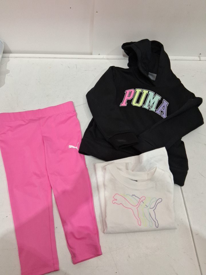 3PC GIRL'S PUMA HOODIE, LEGGINGS AND SHIRT SET - 3 - PINK / black / white (STYLE: 8888001)