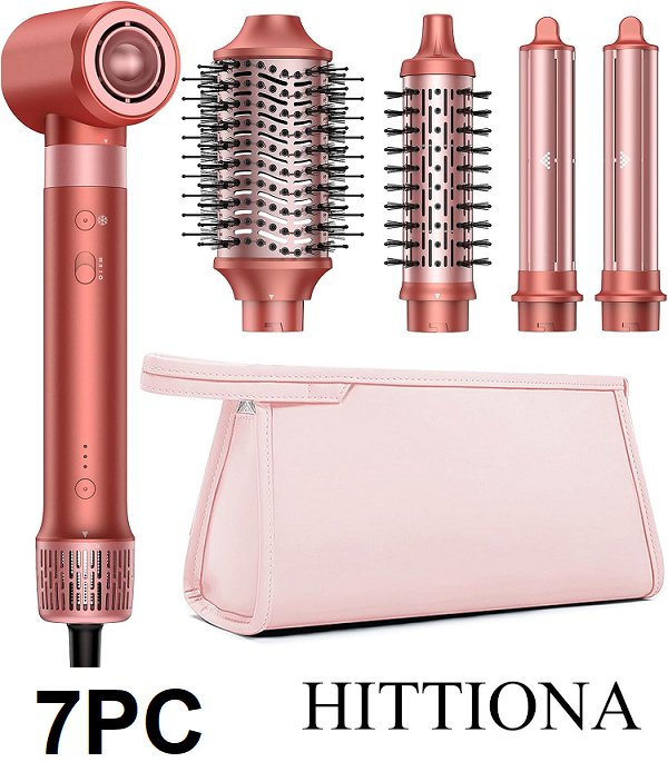 7pc HITTIONA 5-in-1 High-Speed Hair dryer and Styler - deep coral - (model:f2)