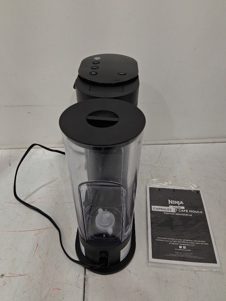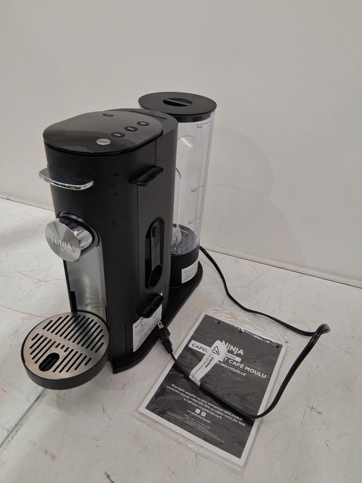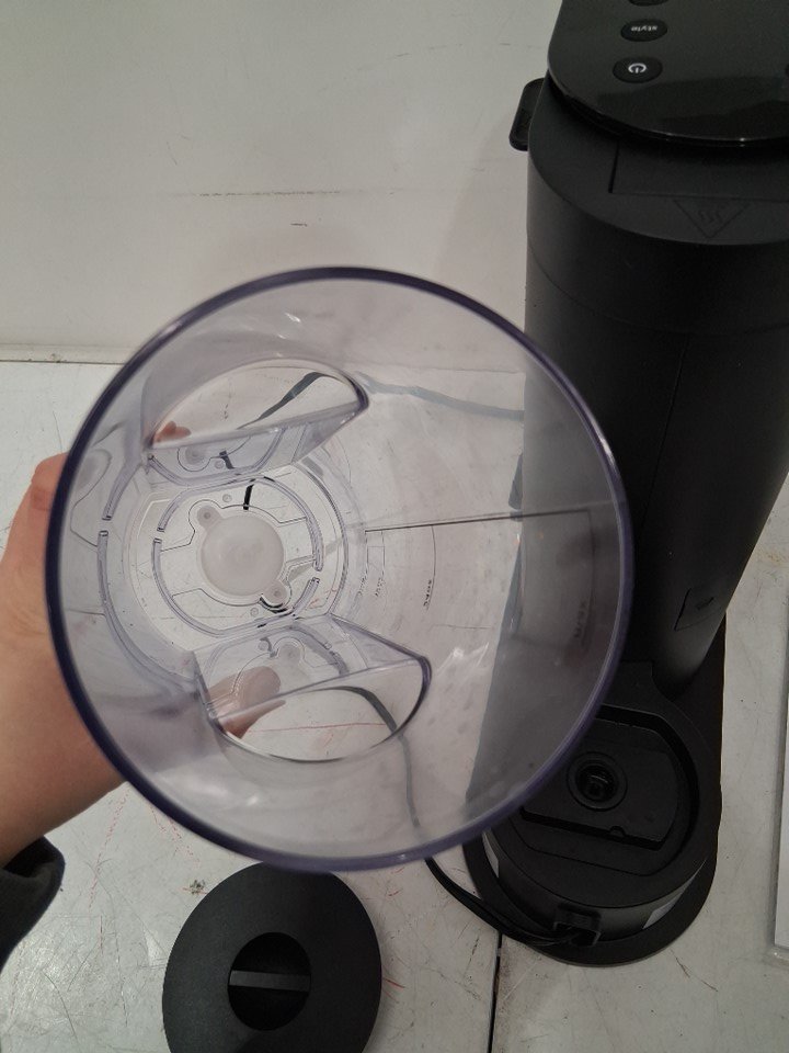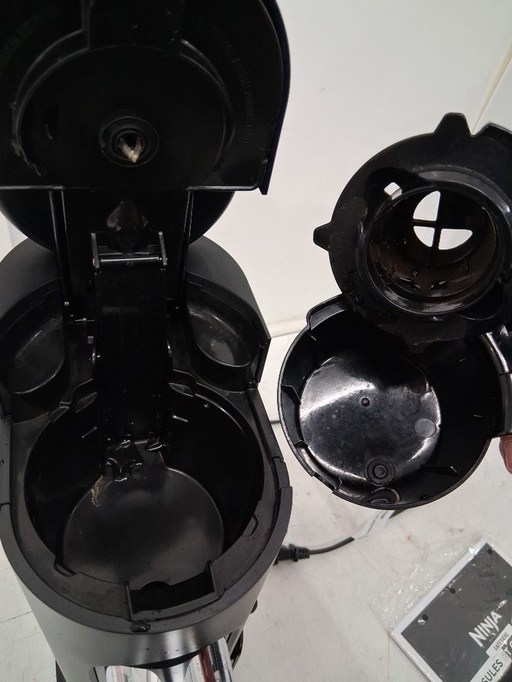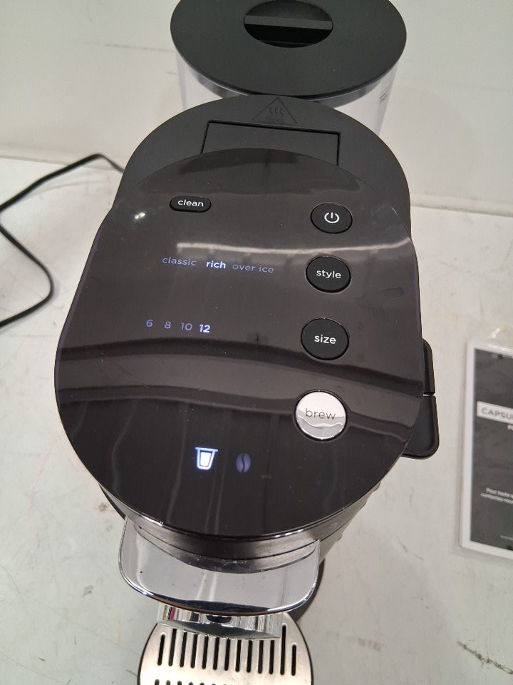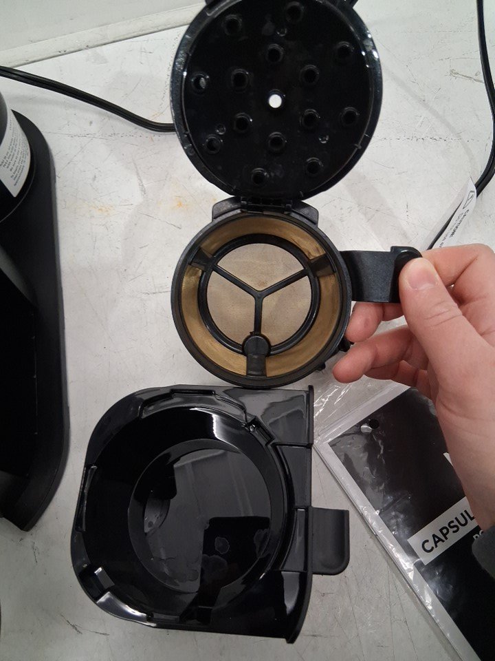 Coffee residue inside the coffee chamber and pieces and water residue in the water tank. Tested for basic power only. See photos.