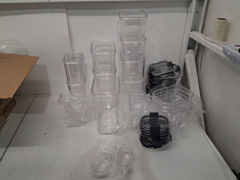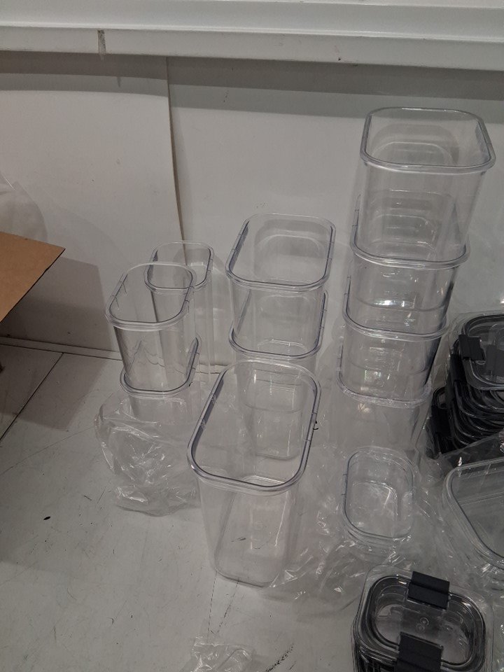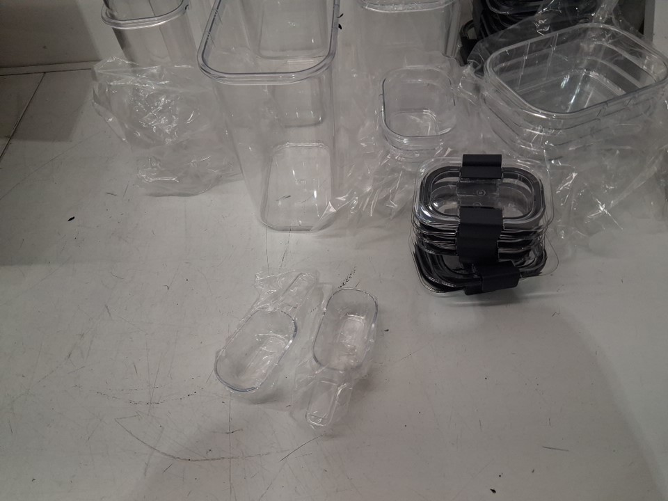 42pc rubbermaid brilliance pantry bpa-free container and lid set with 2 scoops - clear/black (model: ‎2179238)