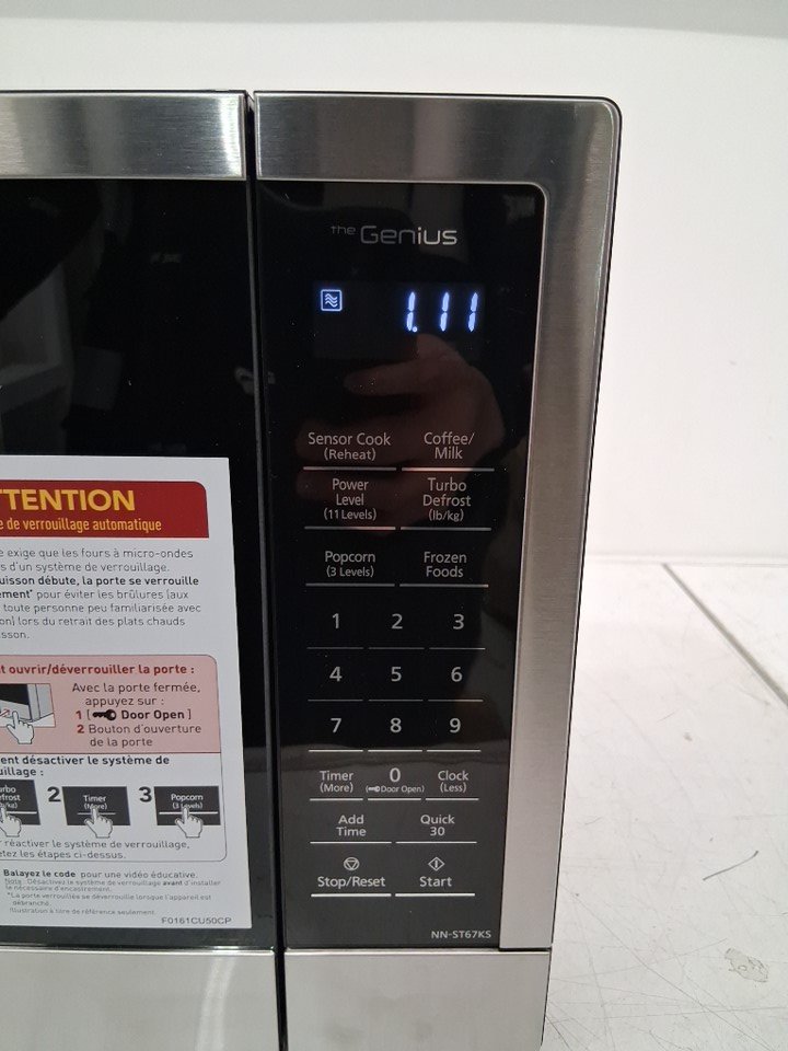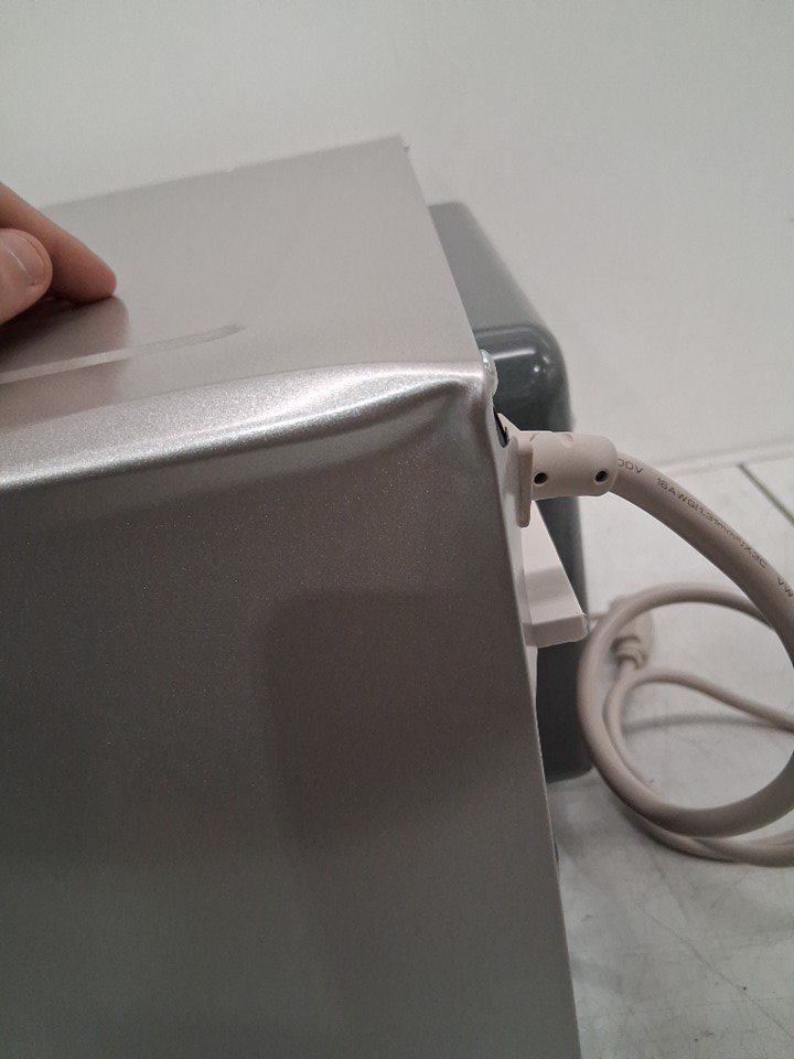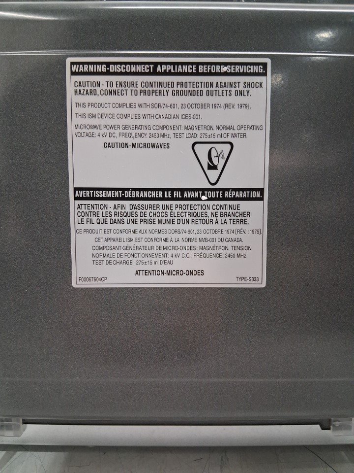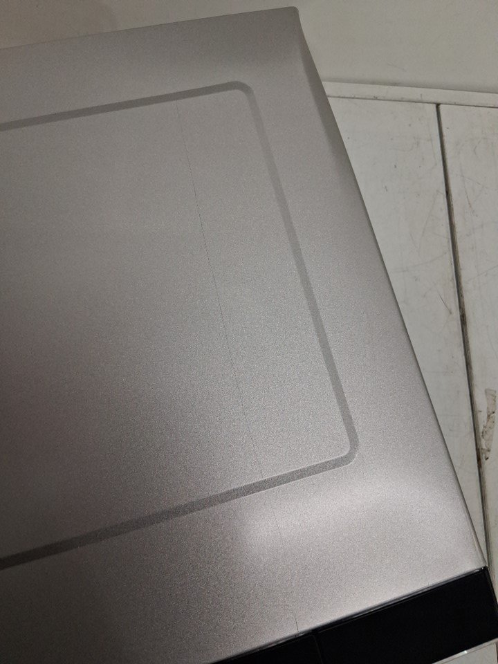 There is a dent on the back right side corner of the microwave and there are some scratches on the top of the microwave due to shipping and handling. (Please see photos) Tested for basic power.