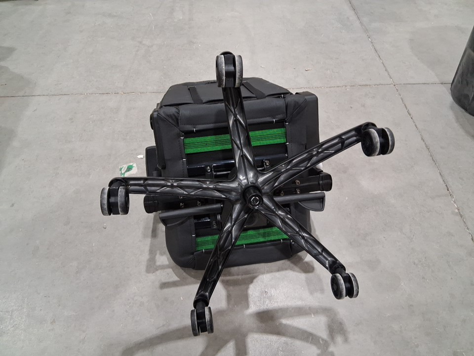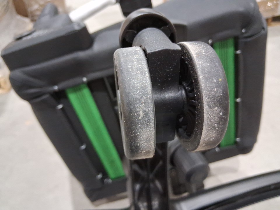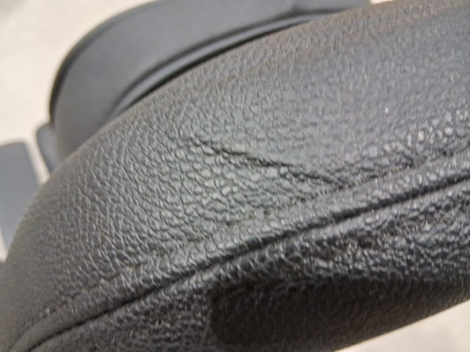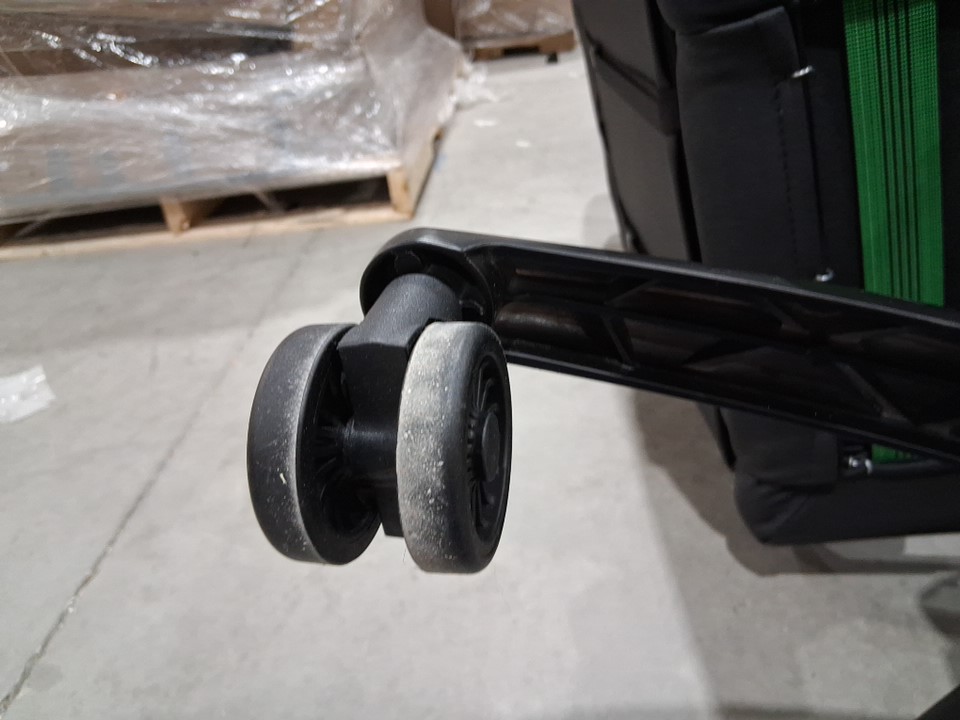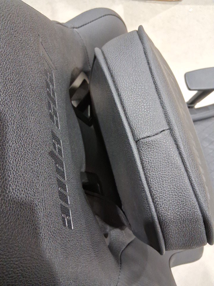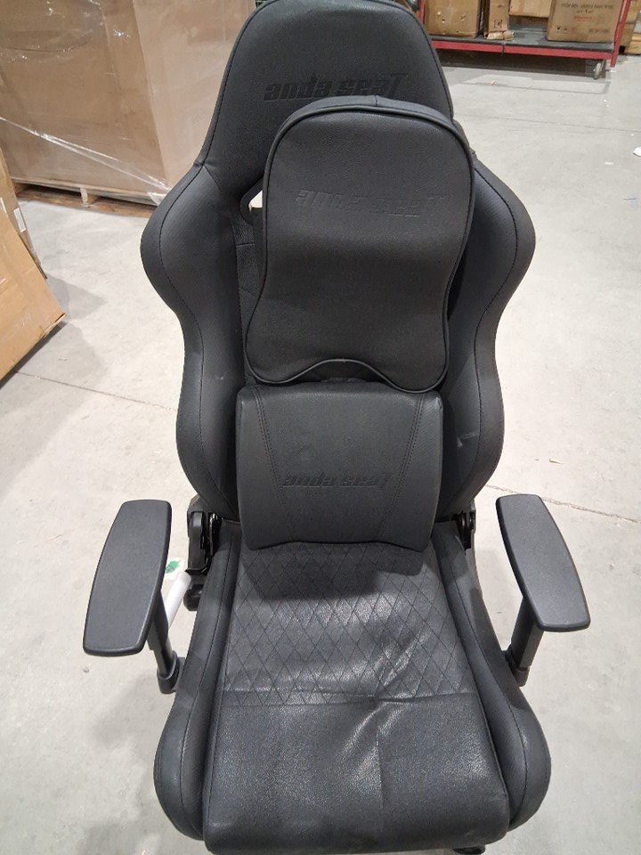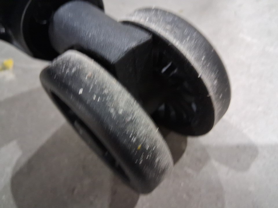 There is some dust and scuff marks on the bottom of the wheels from previous assembly. There is also some slight scuffs at the top of the product. Finally there is a white mark on the right side of the chair. See photos attached.