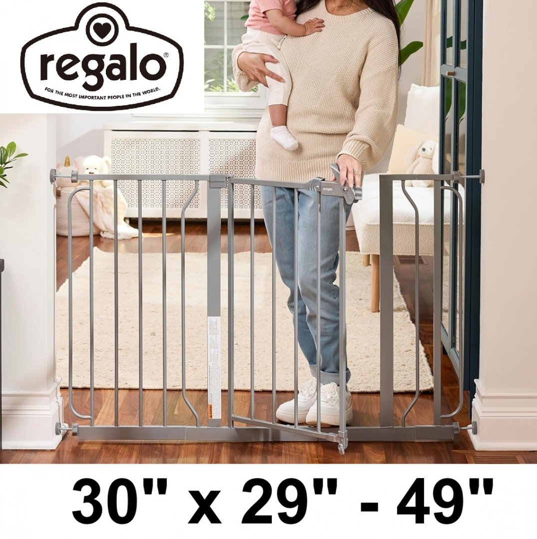 REGALO EASY STEP EXTRA WIDE METAL SAFETY GATE - 30" x 29" - 49" - Platinum (MODEL: 1164 EP DS)