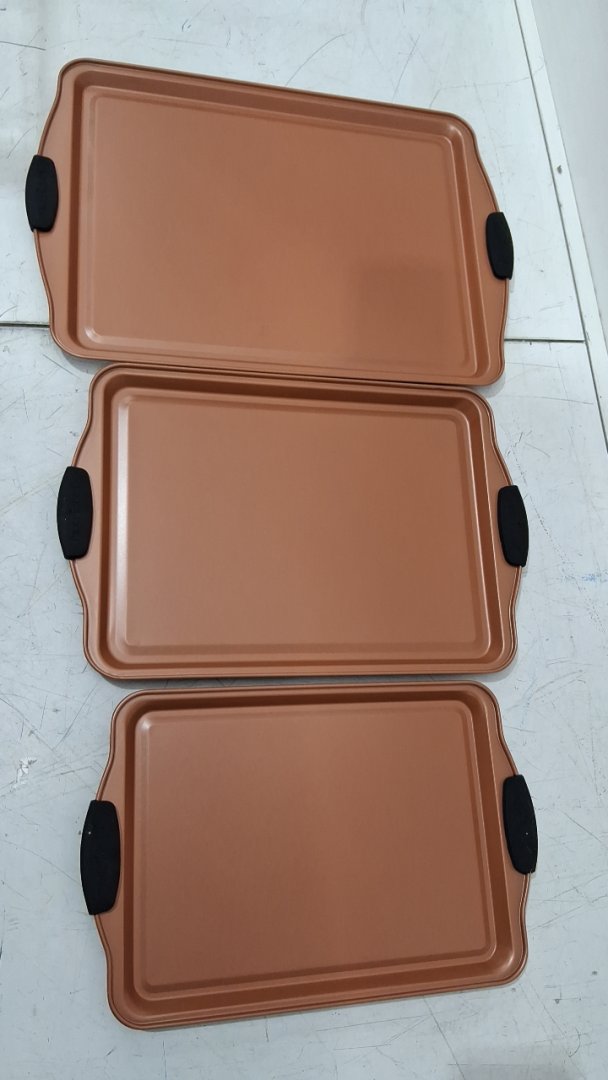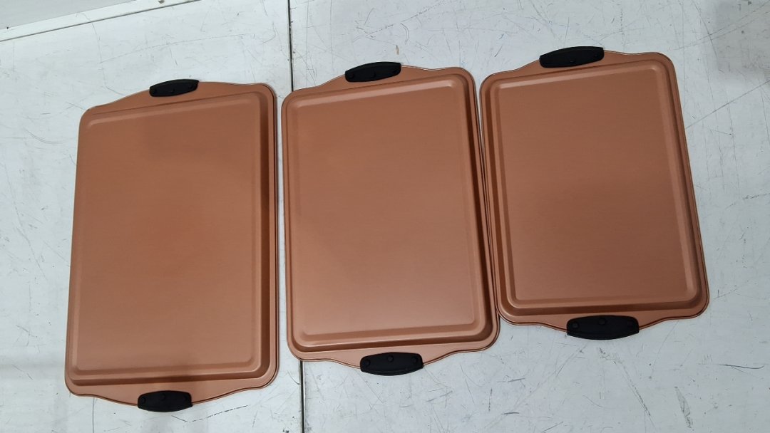 3PC NUTRICHEF NONSTICK BAKING SHEET SET - 3 SIZES - COPPER (MODEL: NCSBS3S45)