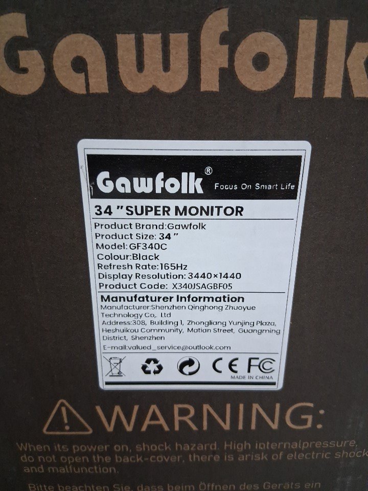gawfolk 34" Ultrawide Curved Gaming Monitor, 1500R PC Screen - 165Hz , UWQHD 3440x1440, Curved Computer Monitor with FreeSync & Liftable Stand - Black (Model: gf340c)