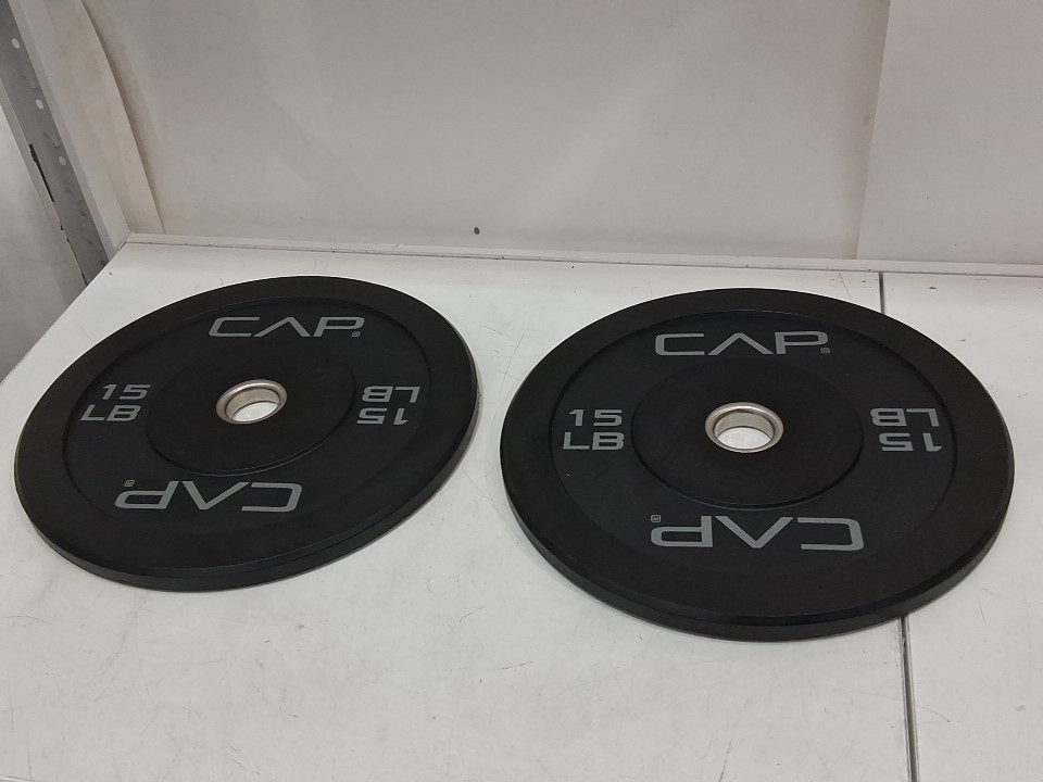 2pk CAP Barbell Rubber Olympic Bumper Plate - 15lb - black (model: opr6pis-20)