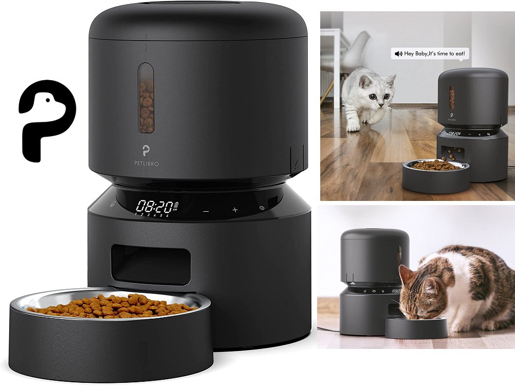 PETLIBRO AUTOMATIC CAT FEEDER DRY PET FOOD DISPENSER UP TO 50 MEALS - 6 DAYS BUILT IN SPEAKER TO COMMUNICATE WITH YOUR PET - BLACK - (MODEL PLAF005)