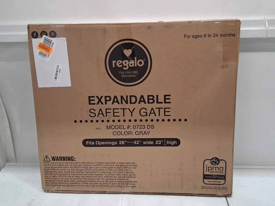 regalo plastic expandable safety gate - 28" to 42" x 23" - grey (model: 0723ds)