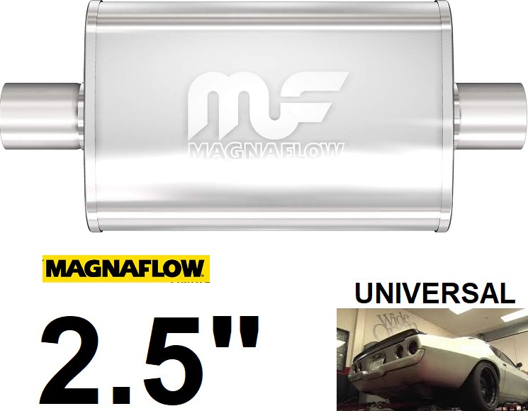 MAGNAFLOW SATIN STAINLESS STEEL OVAL MUFFLER REPLACEMENT PART, UNIVERSAL FIT, 2.5" FOR VAN, CAR OR TRUCK, (MODEL: 11216)