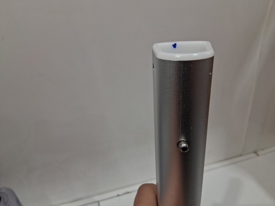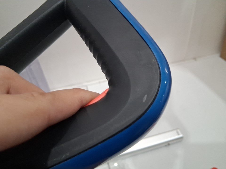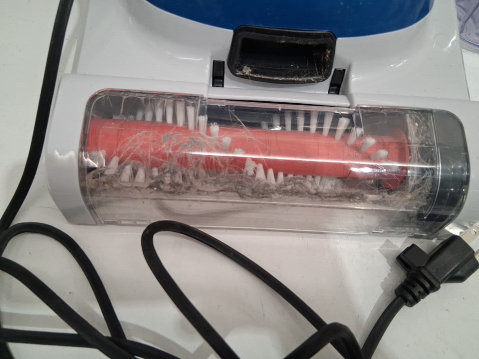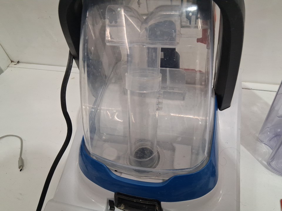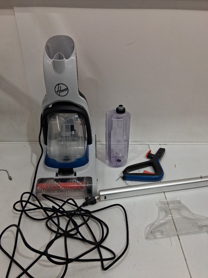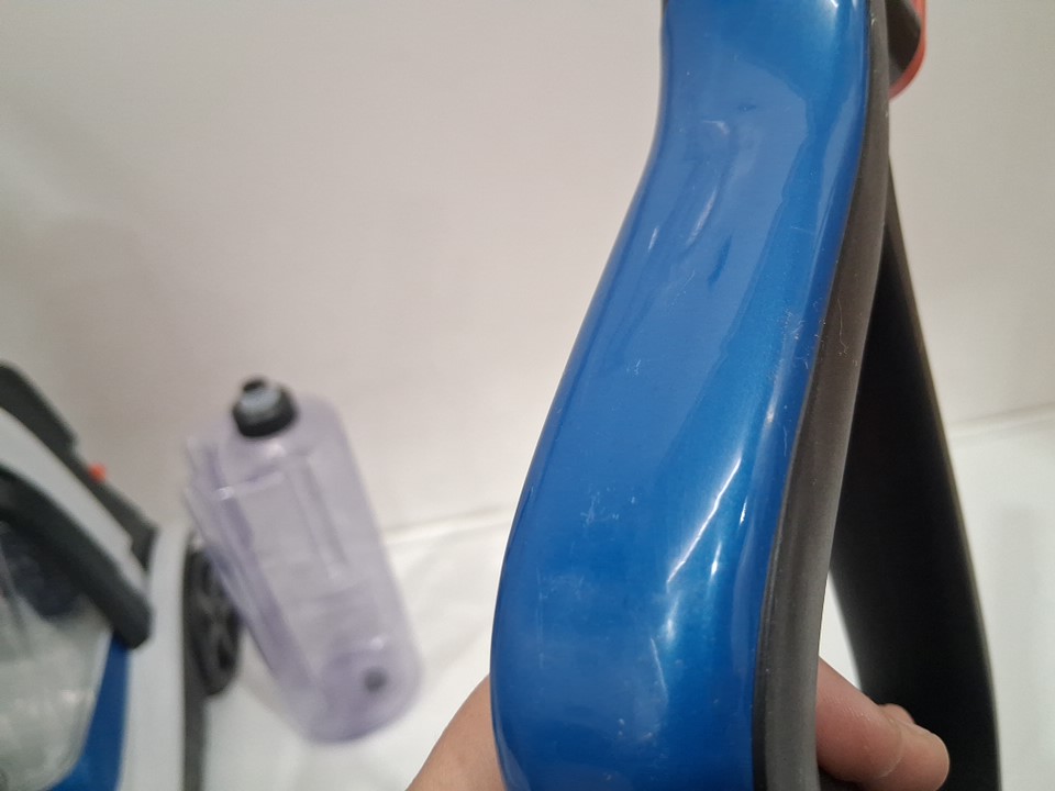 item was tested for power there are some water marks in both of the tanks, hair in the main attachment, a blue mark on the inside of the pole and some scuff marks on the handle (see photos)