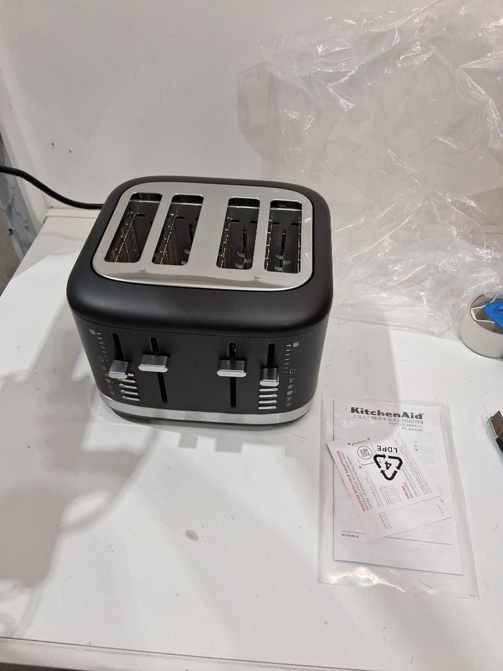 KitchenAid 4 Slice Toaster, 4 additional functions - Bagel, Defrost, Reheat, Little Longer - 1800W - black - (MODEL: KMT4109ER)