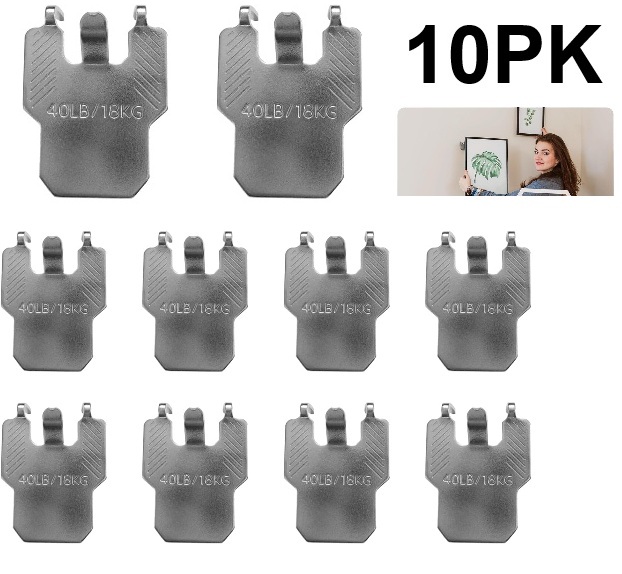 10pc Drywall Picture Hanging Claw Hooks for Photo Frame Mirror Artwork- silver (model: awf30)