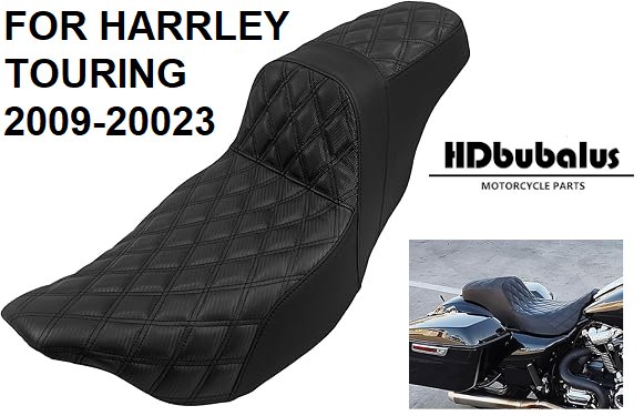 HDBUBALUS Two Up Motorcycle Seat - For Harley Touring 2009-2023 - Black