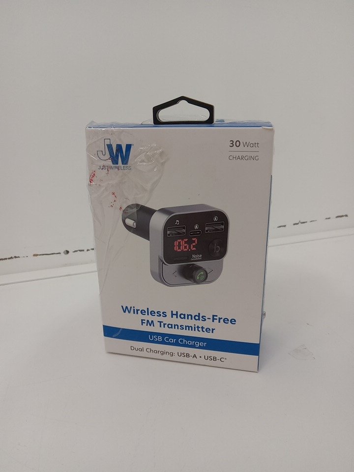 Just Wireless Car Bluetooth FM Transmitter with USB-C and USB-A Ports - 30W - Silver/Black (Model: 20088)
