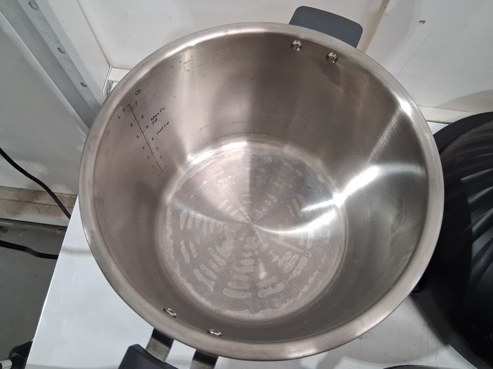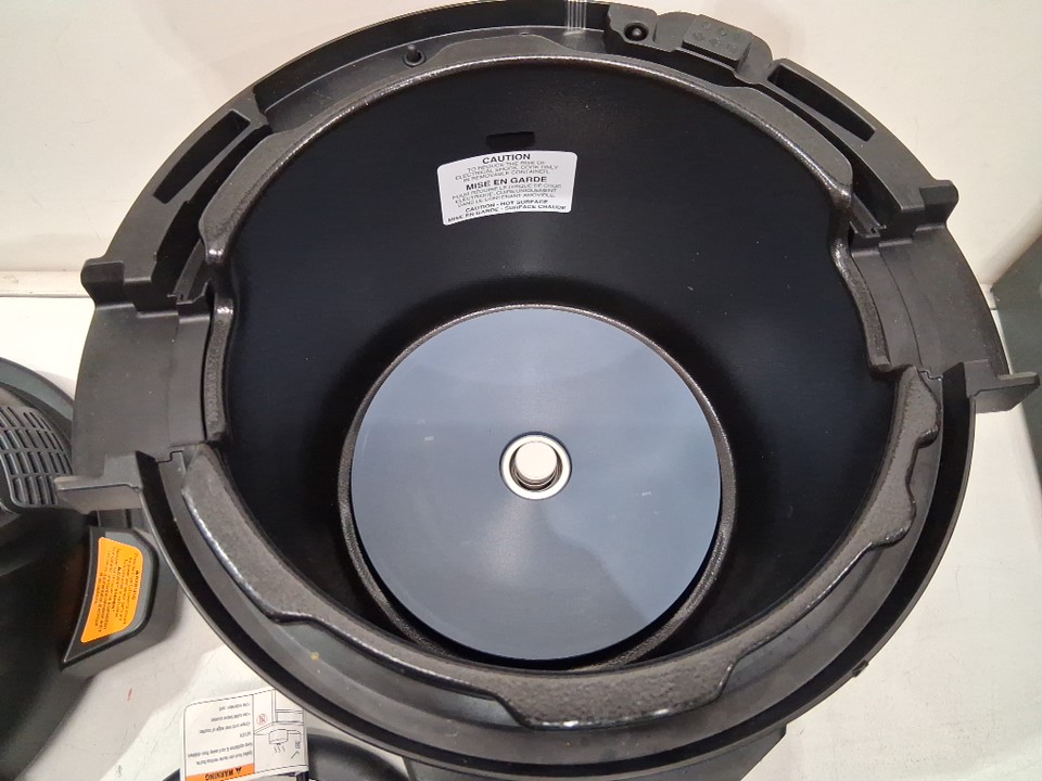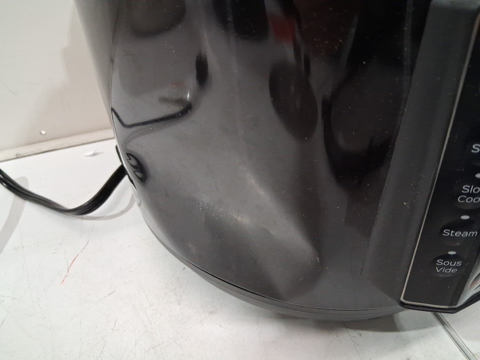 There is a bit of residue in side the pot indicating previous use. Please note that there is a dent in the pot, but it does not appear to affect function (see photos) Tested for power