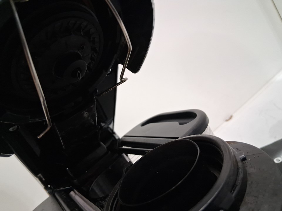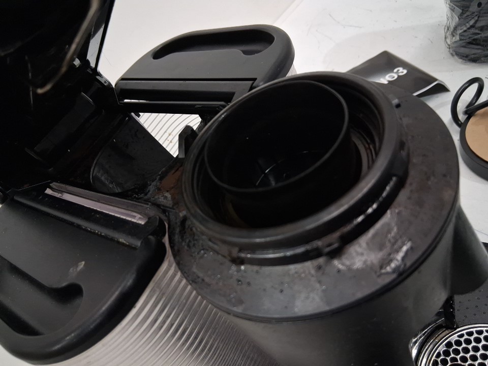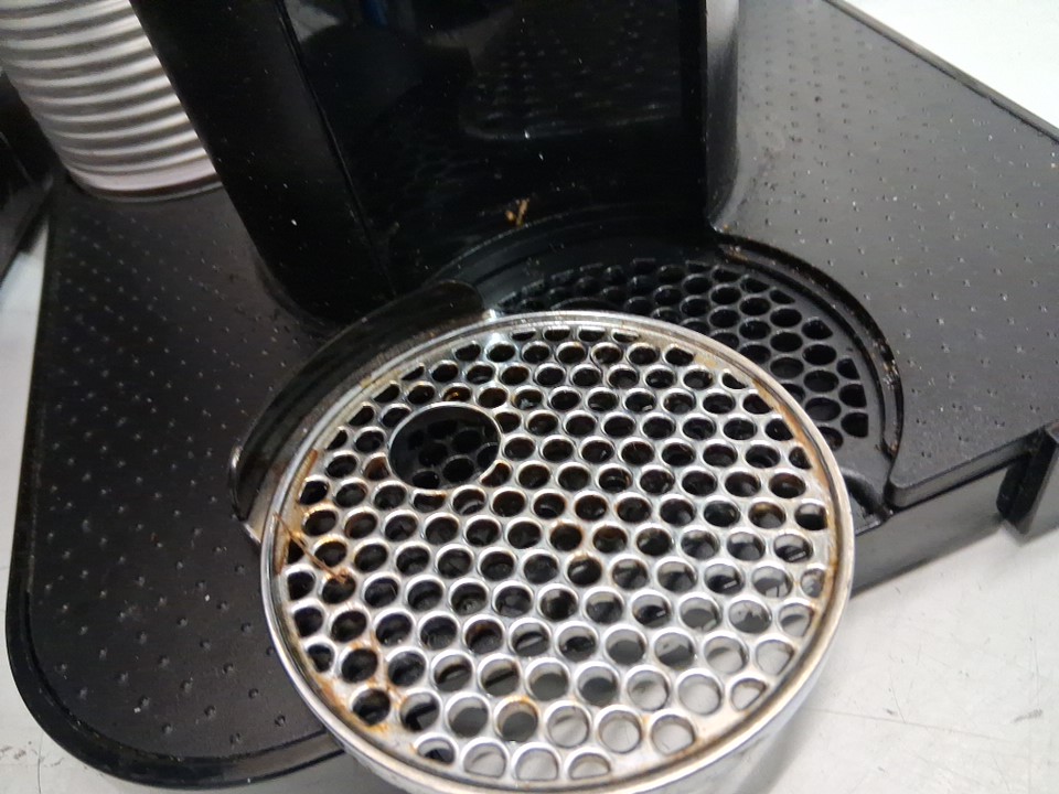 hinges for the water and pod tank lids are broken - Item has coffee stains/grounds from prior use- tested for basic power