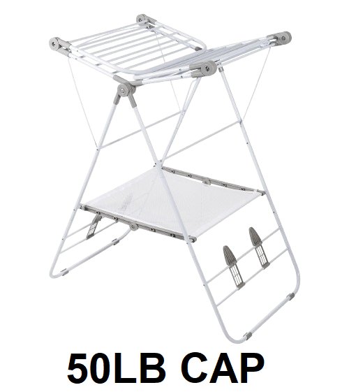 Folding gullwing drying clothing rack - 50lb cap - white/grey