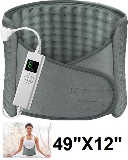 ONEAMG ELECTRIC 6 HEAT SETTINGS 4 AUTO OFF TIMER SETTING WRAP HEATING PAD - 49" x 12" - grey (model: 3060)