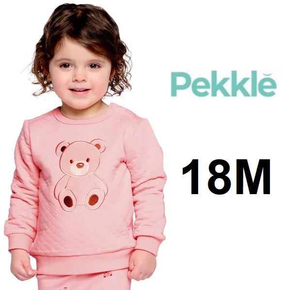 TODDLER girl's pekkle quilted sweater - 18m - pink / teddy bear (style: 2202024)