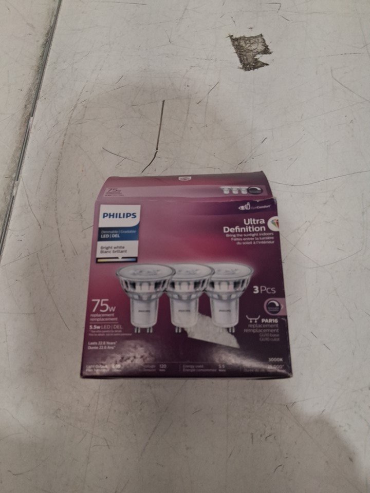 3PK Philips LED 75W,650LM PAR16 Daylight (5000K) Dimmable Glass Bulb Ultra Definition - BRIGHT WHITE - (MODEL: 9290038593)