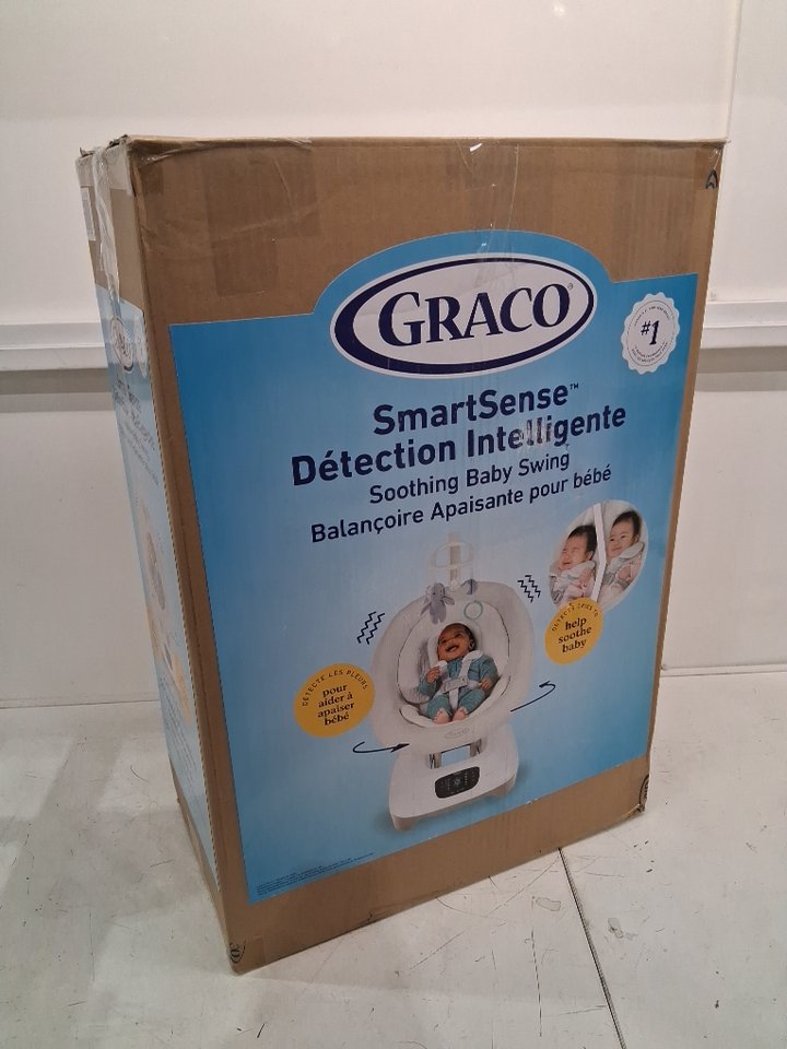 GRACO Smart Sense Soothing Soft Cotton Seat Baby Swing - 25lb cap - GREY/white - (MODEL: 2227837)