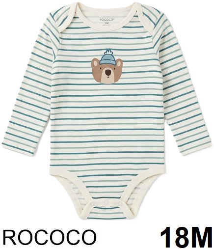 TODDLER BOY'S ROCOCO LONG SLEEVE BODY SUIT - 18M - BLUE STRIPE / BEAR (STYLE: 2414444)
