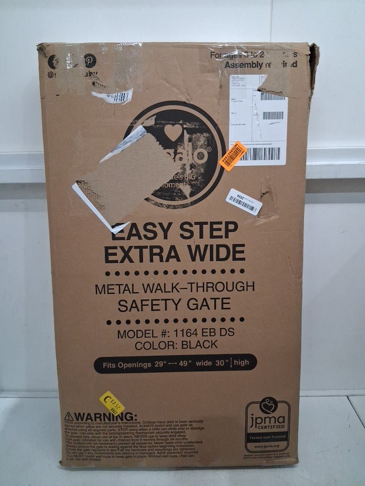 REGALO EASY STEP EXTRA WIDE METAL SAFETY GATE - 30" x 29" - 49" - BLACK (MODEL: 1164EBDS)