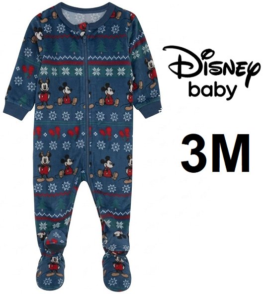 infant Disney BABY Velour christmas mickey mouse onesie Sleeper - 3M - green/blue (STYLE: 9313333)