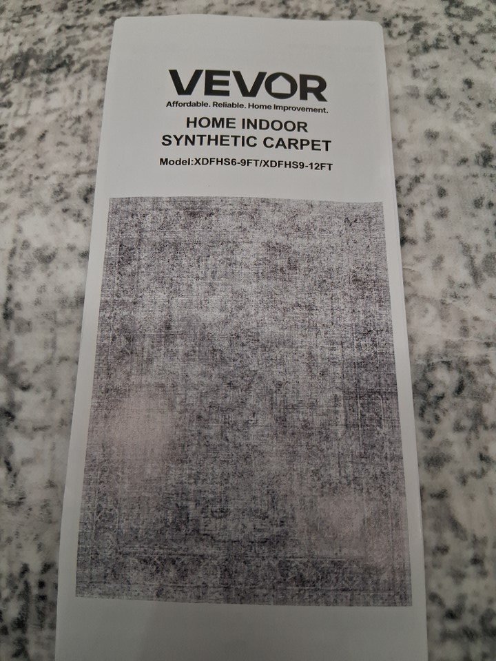 VEVOR foldable machine washable non-slip boho low pile area rug - 9ft x 12ft - grey (model: xdfhs9-12ft)
