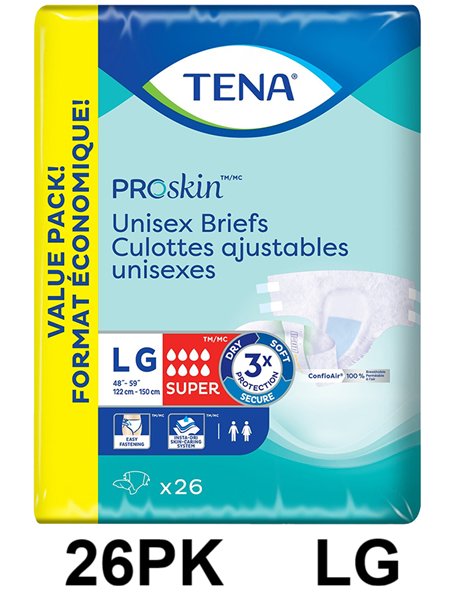 26PK UNISEX TENA PROSKIN INCONTINENCE BRIEFS, SUPER ABSORBENCY, LARGE SIZE