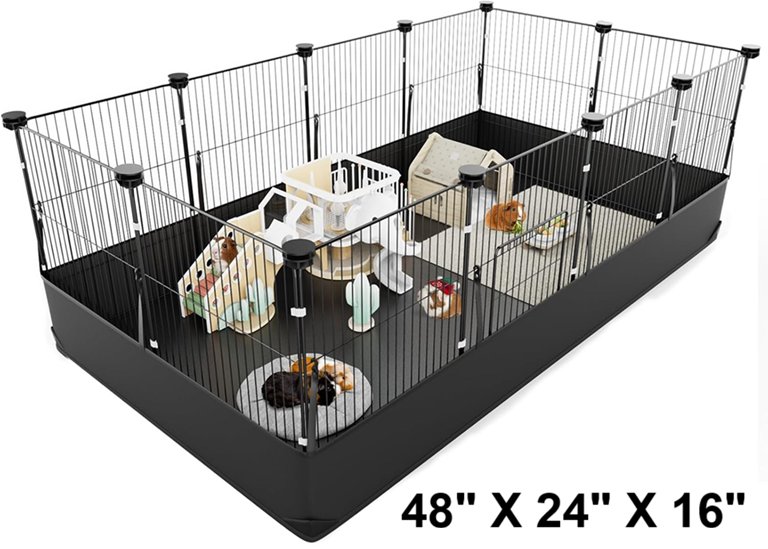 metal small animal guinea pig cage/playpen with waterproof pvc bottom liner - 48"x24"x16" - black