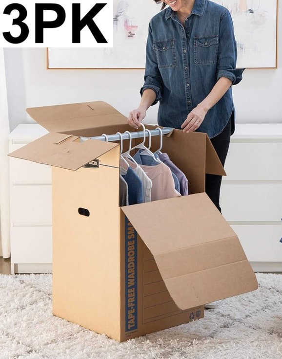 3PK Bankers Box SmoothMove Tape-Free Wardrobe Boxes - 24.38" x 24.38" x 40.25" - brown - (Model: 7710501)
