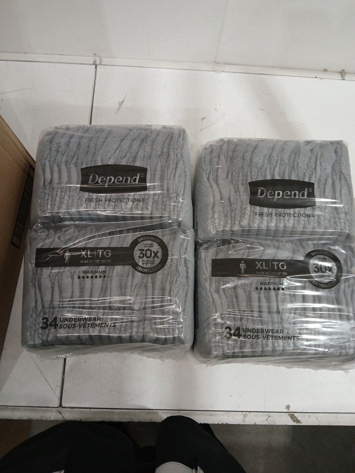68PK MENS DEPENDS MAXIMUM ABORPTION INCONTINENCE DIAPERS WITH DRYSHIELD TECHNOLOGY -XL - GREY