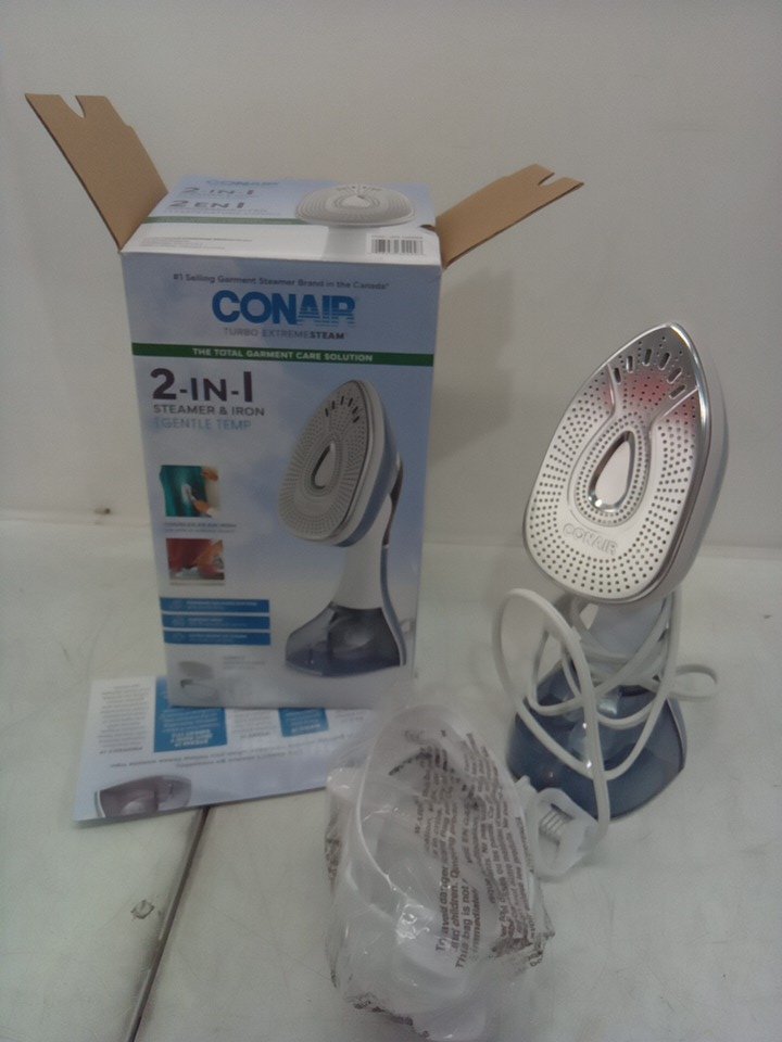 2-in-1 Conair Turbo ExtremeSteam Steamer and Iron with Delicate Setting - white and grey (model:gs408ctxc)